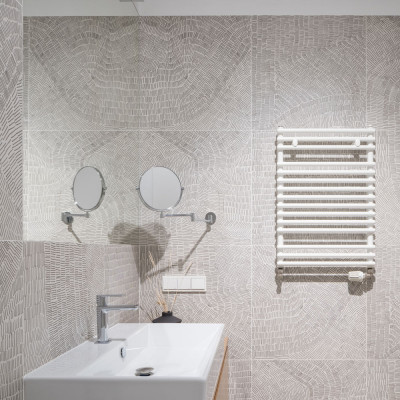 Nasz największy format gresu - slab 120x240 cm. Jest to gres szkliwiony o powierzchni polerowanej na wysoki połysk, o rektyfikowanych krawędziach. Przeznaczony jest na ściany i podłogi. Nada wnętrzom apartamentowego charakteru, znakomicie sprawdzając się w salonach, łazienkach czy jako obudowa wyspy kuchennej. Płytka o grubości 6 mm spełnia wszelkie wymagania wytrzymałościowe przy zachowaniu fachowości montażu oraz zastosowaniu odpowiednich materiałów i narzędzi montażowych do płytek wielkoformatowych.
